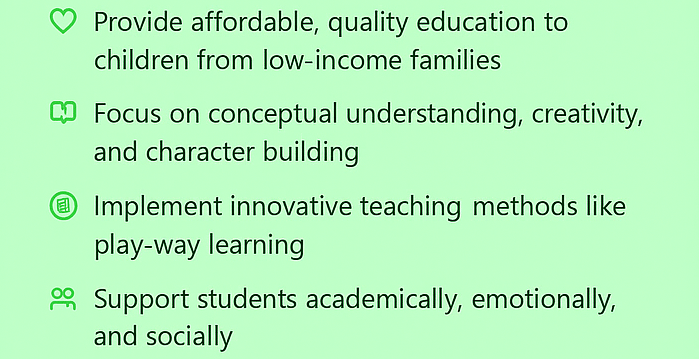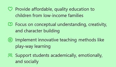 "To build a nation where every child, regardless of socio-economic status, receives high-quality, holistic education that empowers them to dream big, lead confidently, and live with dignity."